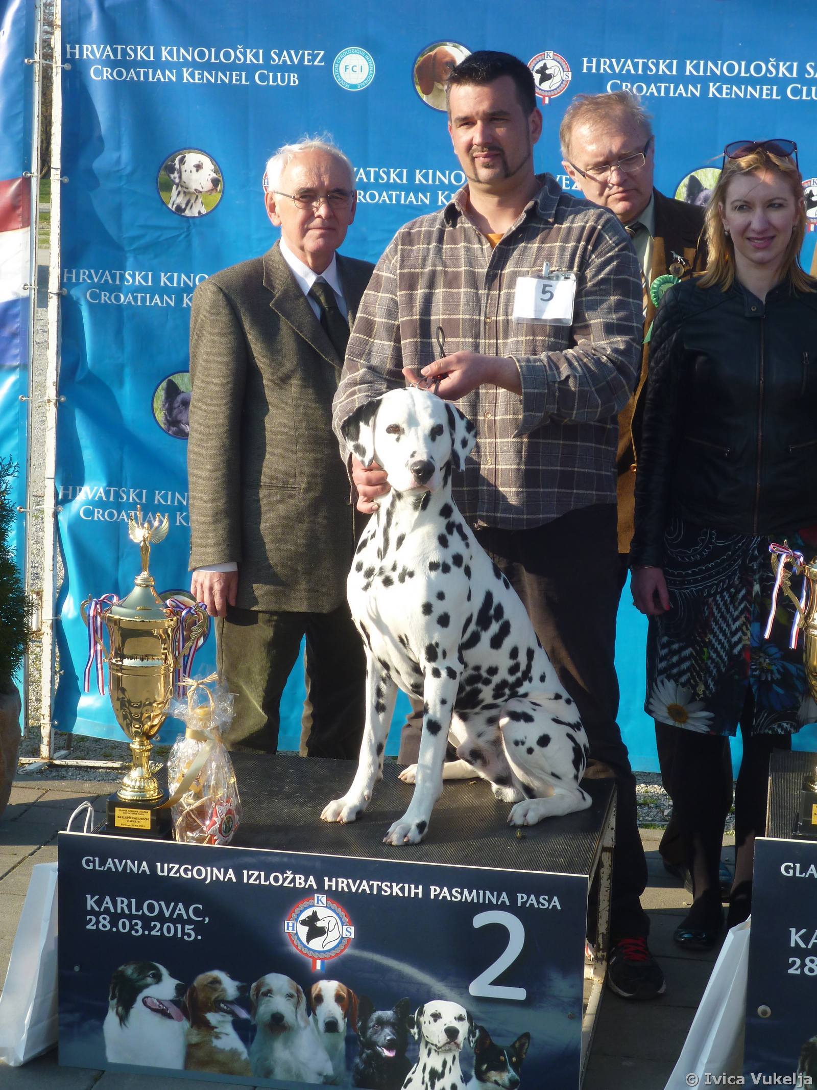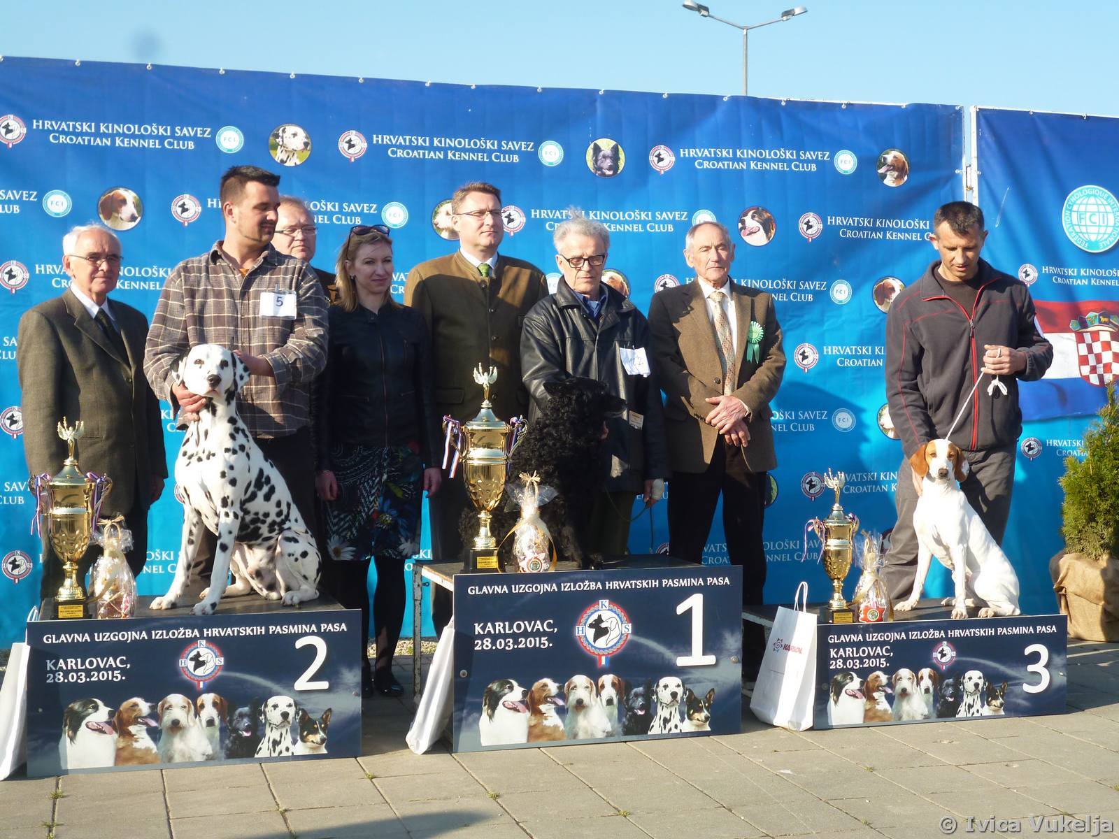 Laskavu titulu, onu za najljepšeg psa izložbe, dobio je hrvatski ovčar Gamaraš, vlasnika Vinka Filipovića iz Županje. Drugo mjesto osvojio je dalmatinski pas Dalmatino Voodoo Vision, vlasnice Željke Halper Dražić iz Zagreba dok je treće mjesto osvojio istarski kratkodlaki gonič Dona Steljko, vlasnika Mate Šarića iz Trogira.